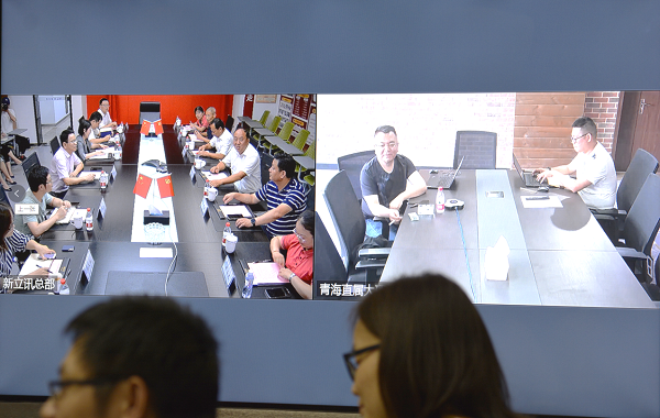 2020年7月28日,高淳區現代農業產業園管委會常務副主任王嚴濤,全國人大代表、江蘇青松生態農業科技發展有限公司董事長兼總經理“、螃蟹大王”邢青松及相關領導同志蒞臨新立訊總部考察調研,新立訊董事、副總經理韓榮攜公司在家高管層及研發機構負責人熱情接待,新立訊董事長毛霖遠程視頻會議接入。